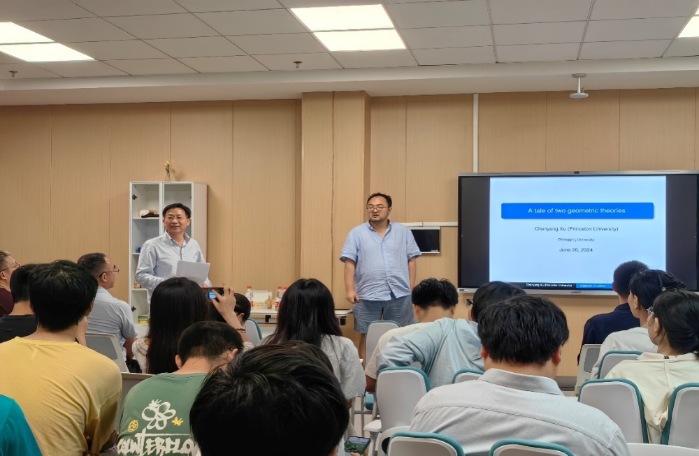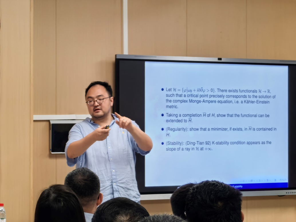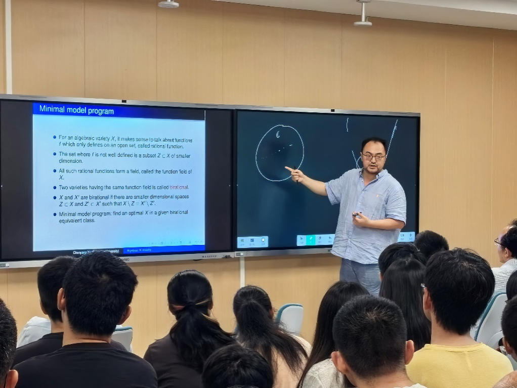 许晨阳教授凭借深厚的学术造诣和独到的见解,为师生们呈现了一场关于双有理几何理论的精彩报告。报告内容主要分为两部分:首先,他详细介绍了分析几何中的Kähler-Einstein度量,随后又讲解了代数几何中的极小模型纲领。