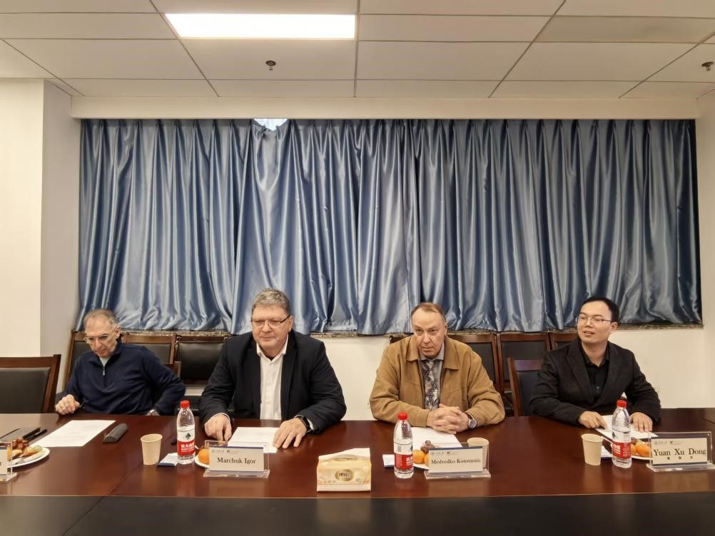 院长穆春来主持交流会,并对Marchuk lgor一行的到来表示热烈欢迎。学院党委书记刘卫红、党委副书记何清达、副院长王奕、数学中心副主任孔德荣和优秀青年教师代表参加交流。