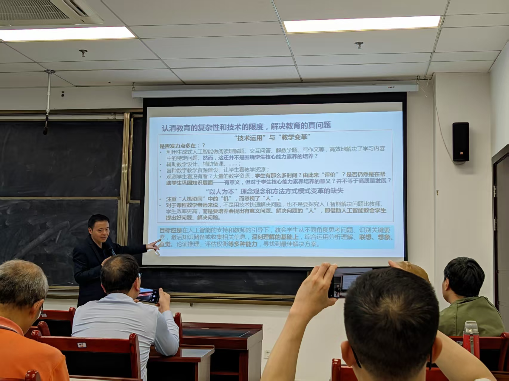 在互动交流环节,与会教师就大模型在课程平台中的应用、学生依赖生成式人工智能平台完成作业对学生独立思考能力的影响等问题与黄教授展开了热烈讨论。