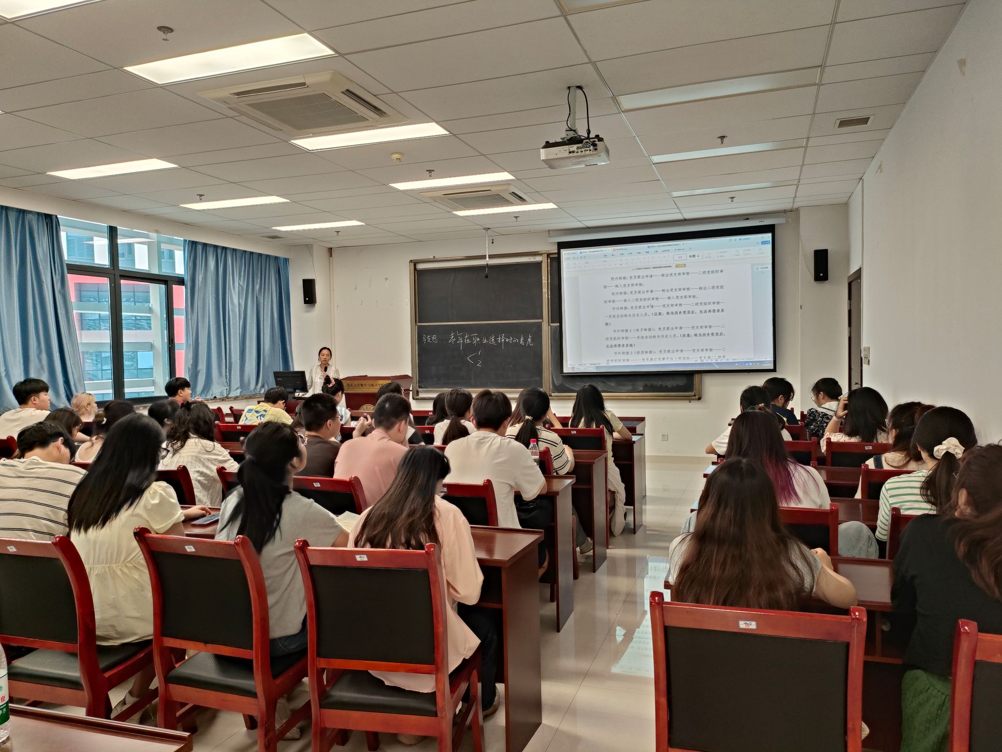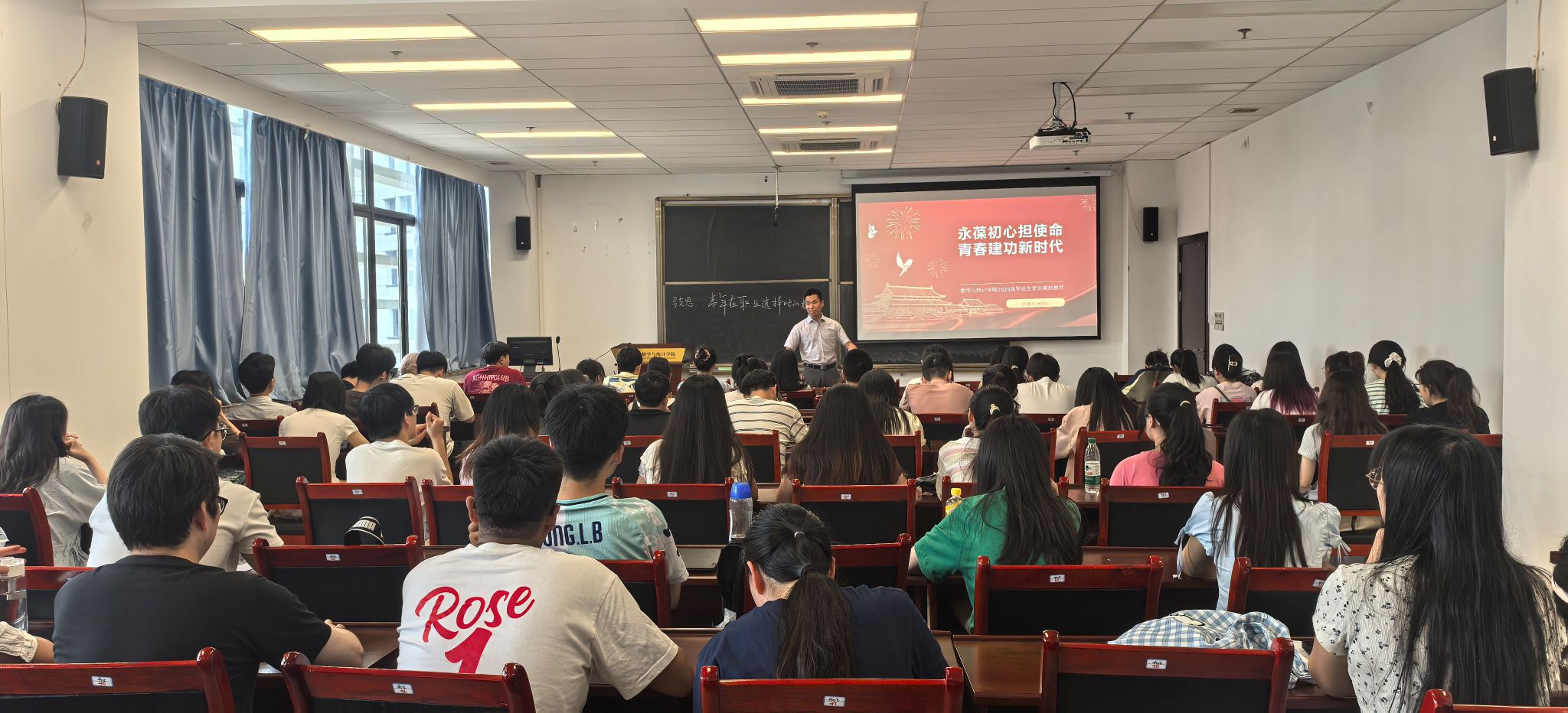 在理科楼LD402举办2025届毕业生党员离校教育活动。学院党委副书记、纪委书记何清达出席活动并为毕业生党员讲授专题党课,全体毕业生党员参与,活动由学院党委组织员戴娟老师主持。