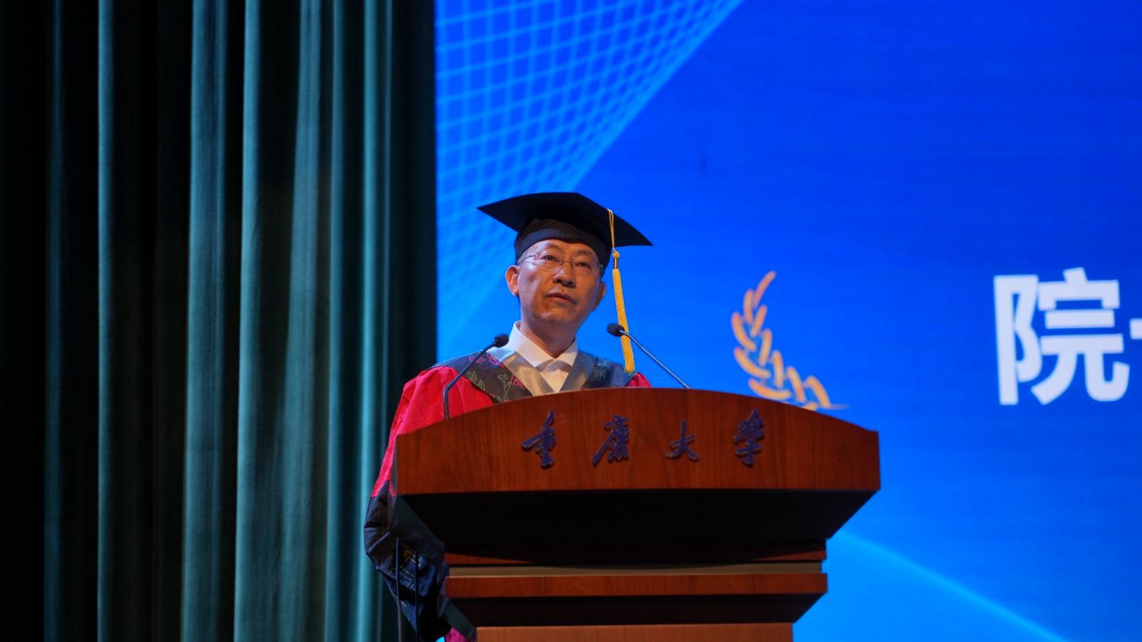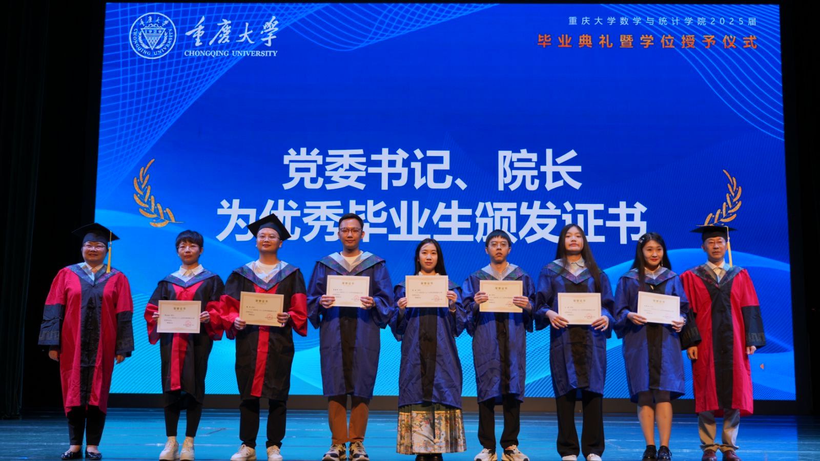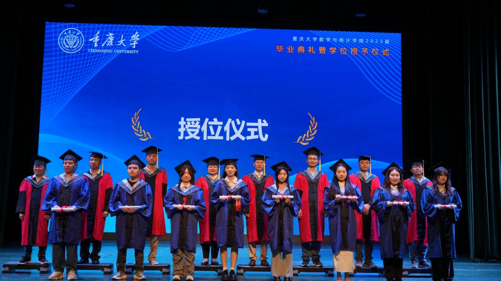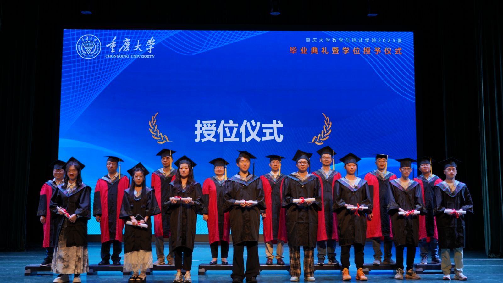 2025届学生毕业典礼暨学位授予仪式在虎溪校区小剧场举行。数统学院院长穆春来、党委书记刘卫红、副院长黄小军、党委副书记何清达出席典礼,院学位评定分委员会委员、教师代表、2025届全体毕业生及部分家长代表500余人参加。典礼由院学办主任、本科2021级辅导员赖大炜主持。