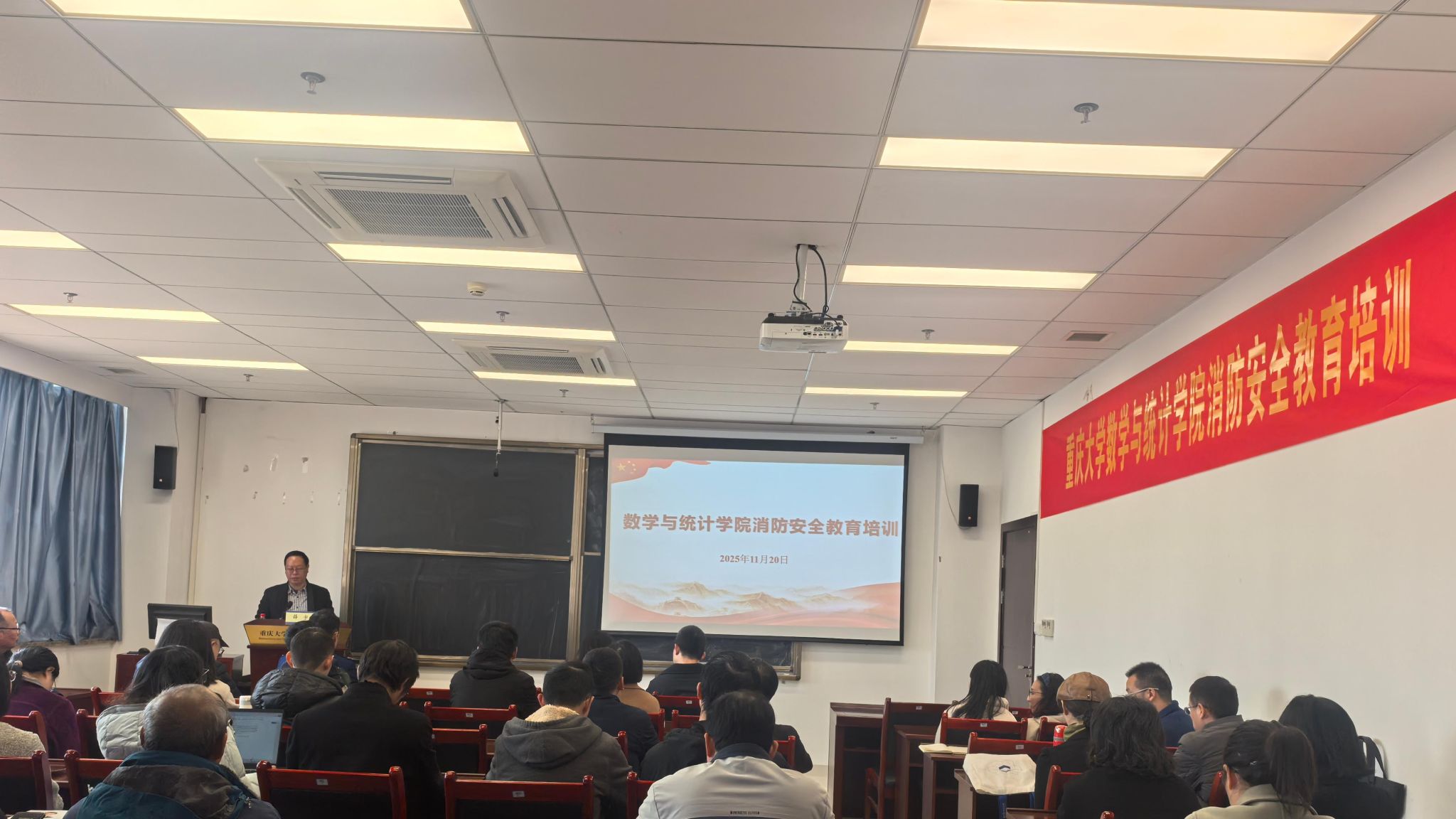 开展消防安全教育培训,全体教职员工参加,学院副院长李东主持。