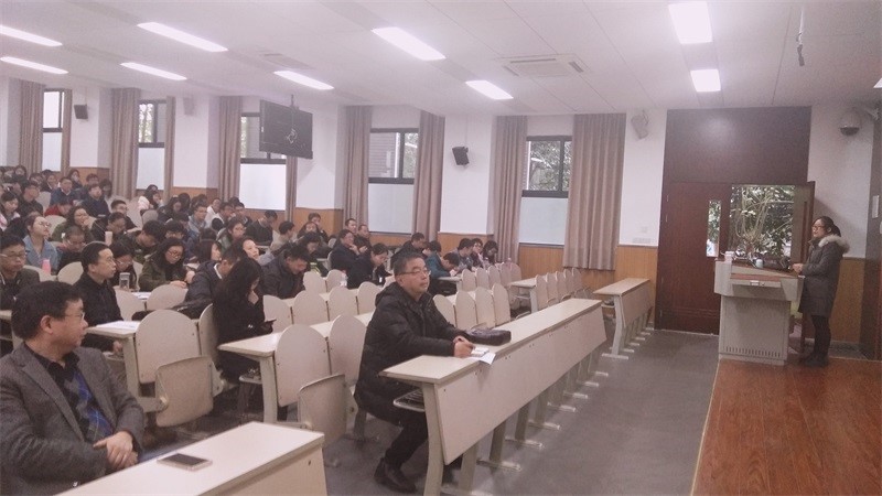 秦岚书记主持,由学校十九大精神宣讲团蒋荣老师主讲。