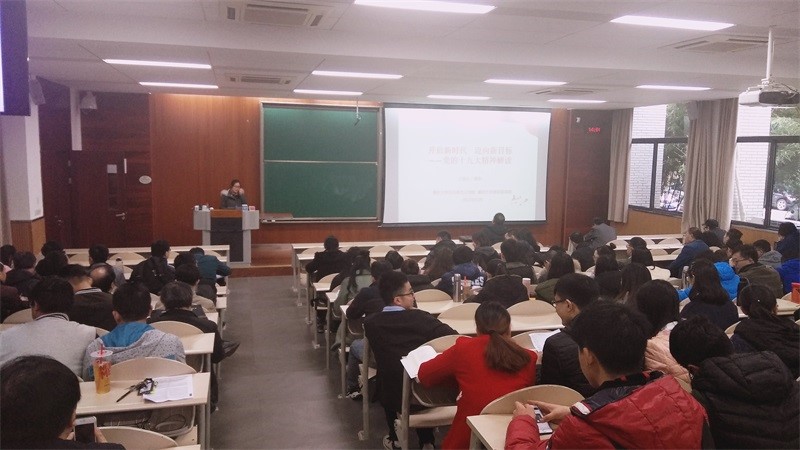 2017年11月29日下午2点,学校十九大精神宣讲团在第一教学楼D1125展开以“开启新时代 迈向新目标”为主题的十九大精神解读活动,新2网址