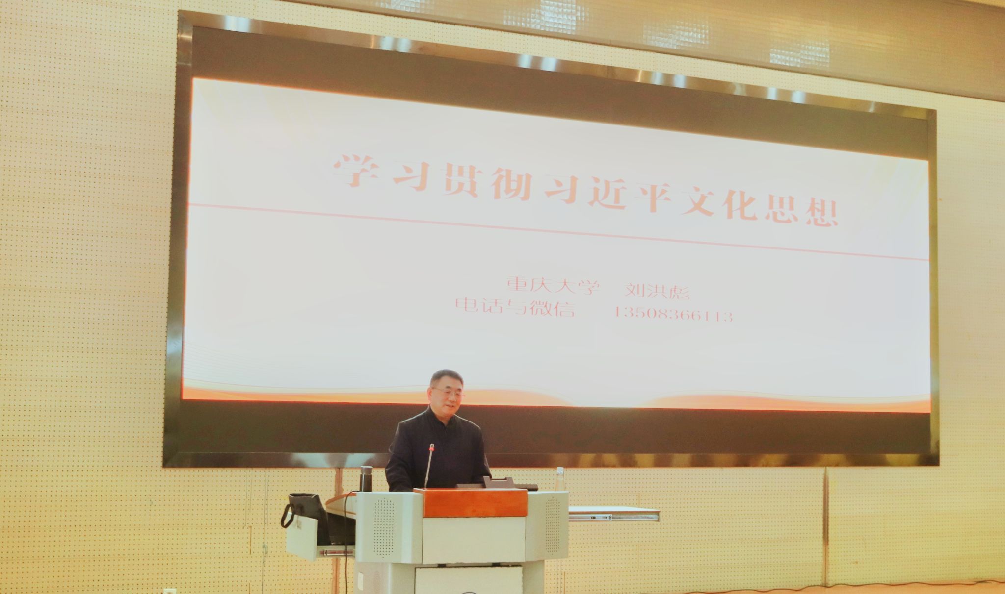 马克思主义学院的刘洪彪教授。刘教授以时间为序,从理论渊源、实践基础、重要意义和丰富内涵等四个方面,全面梳理习近平文化思想,通过摆事实、举例子、做比较,深入浅出地引导学员要树立文化自信。