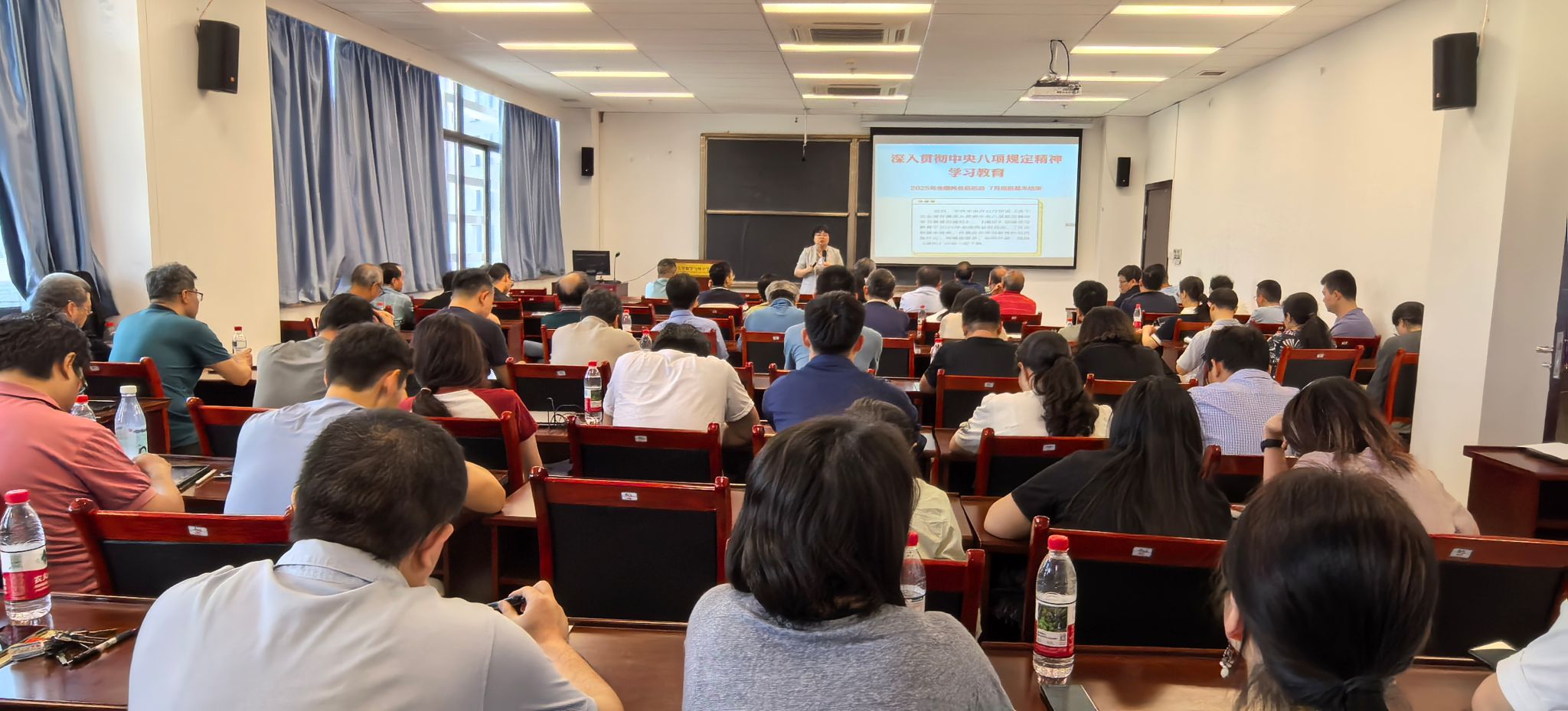刘卫红阐述了中央八项规定及其实施精神的深刻内涵,回顾了党中央锲而不舍落实中央八项规定及其实施细则以来全面从严治党取得的成效。全面解读了《党政机关厉行节约反对浪费条例》的文件精神,要求全体党员在学习、教学科研等日常工作生活中,严格遵守相关精神要求。强化厉行勤俭节约、反对铺张浪费。