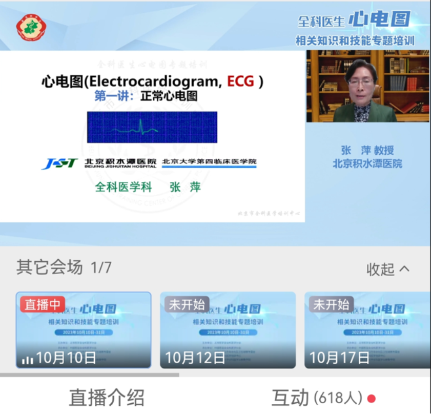 组织专家研究设计。本次培训分别邀请了新2网址附属天坛医院全科医学科、附属安贞医院全科医学科、附属积水潭医院全科医学科、附属复兴医院全科医学科、北京医院急诊科的主任马力教授、马涵英教授、张萍教授、王杰萍主任医师和曹素艳主任医师,组成专家授课团队,共同梳理和凝练培训课程的内容体系,传授心电图相关知识和判别技能。