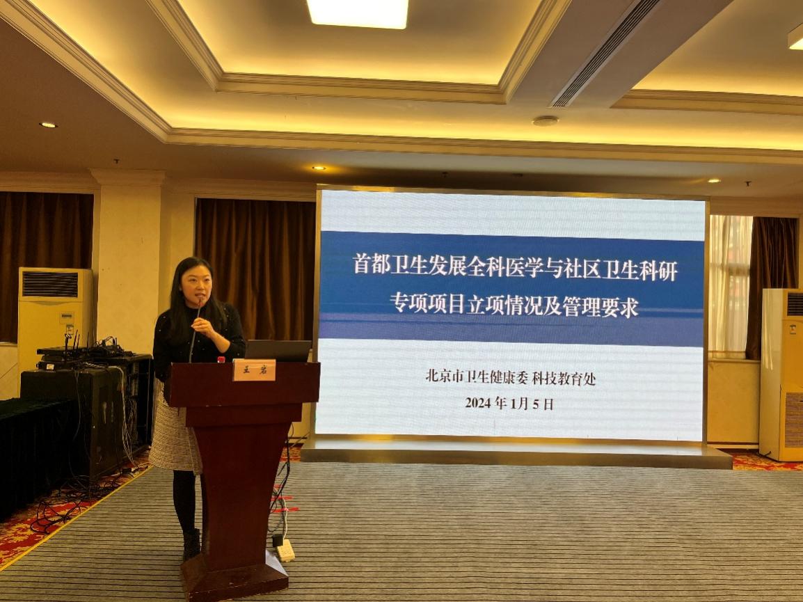 1月5日下午,2023 年“首都卫生发展全科医学与社区卫生科研专项”(以下简称首发全科专项)启动会顺利召开。本次会议由首发全科专项管委会主办,全体项目负责人、首发全科专项科研导师、首发全科专项管理委员会成员参会,市卫健委科教处刘颖处长、王岩老师出席会议,会议由管委会主任王晨教授主持。