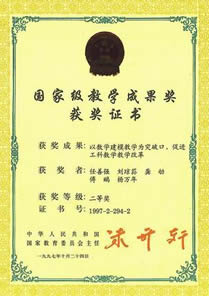 国家级教学成果奖二等奖“以数学建模教学为突破口,促进工科数学教学改革”,国家教育部颁发, 1997.10 ,任善强,刘琼荪,龚劬,傅鹂,何中市;