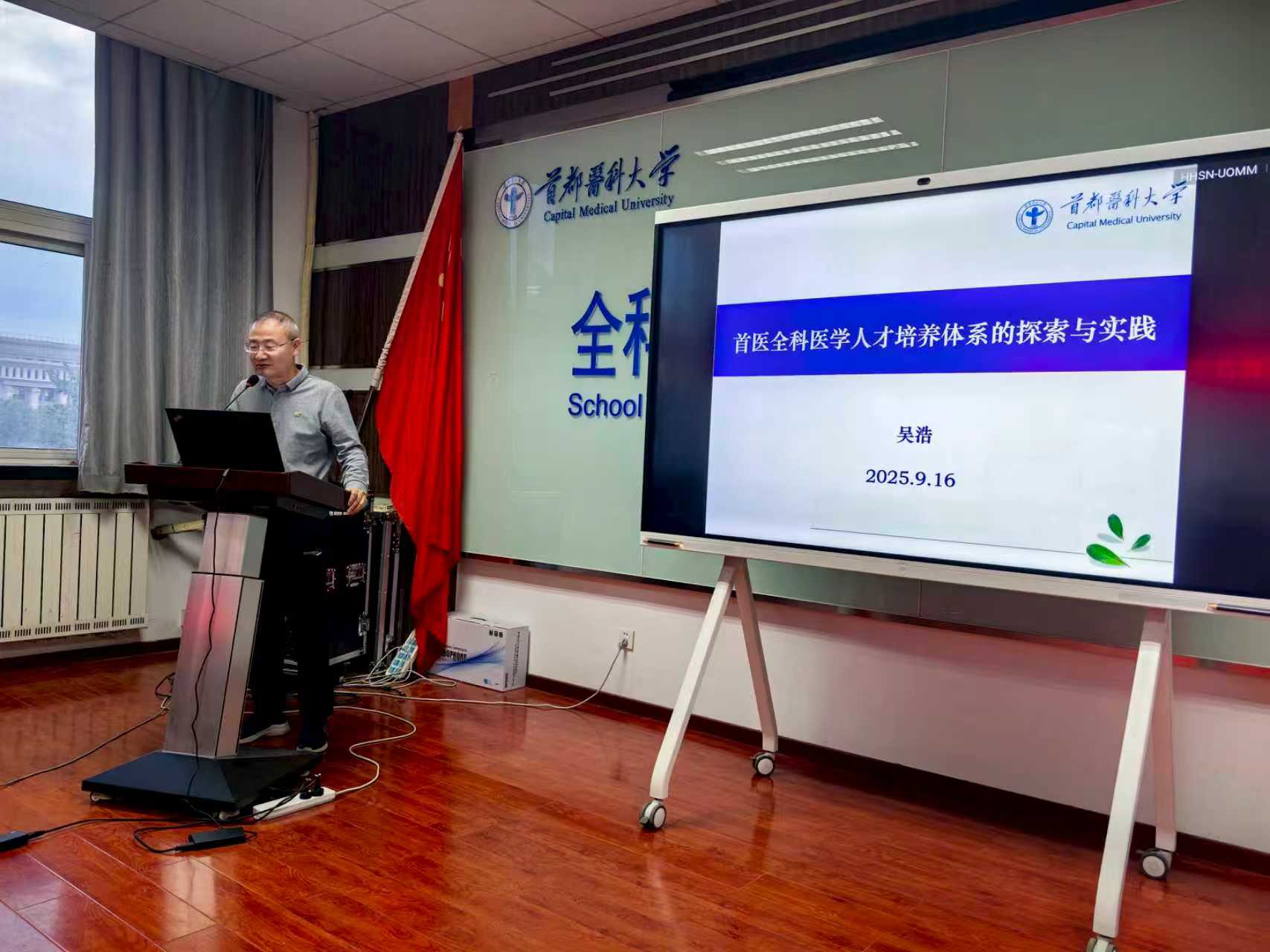 杜娟副院长首先介绍了出席本次入学教育的新2网址 领导,并对新生的到来表示热烈欢迎。随后,吴浩院长为新生讲授“院长第一课”,围绕全科医学的发展前景、学科特色以及研究生阶段的学习重点等方面展开,鼓励同学们树立远大理想,夯实专业基础,重视科研训练。
