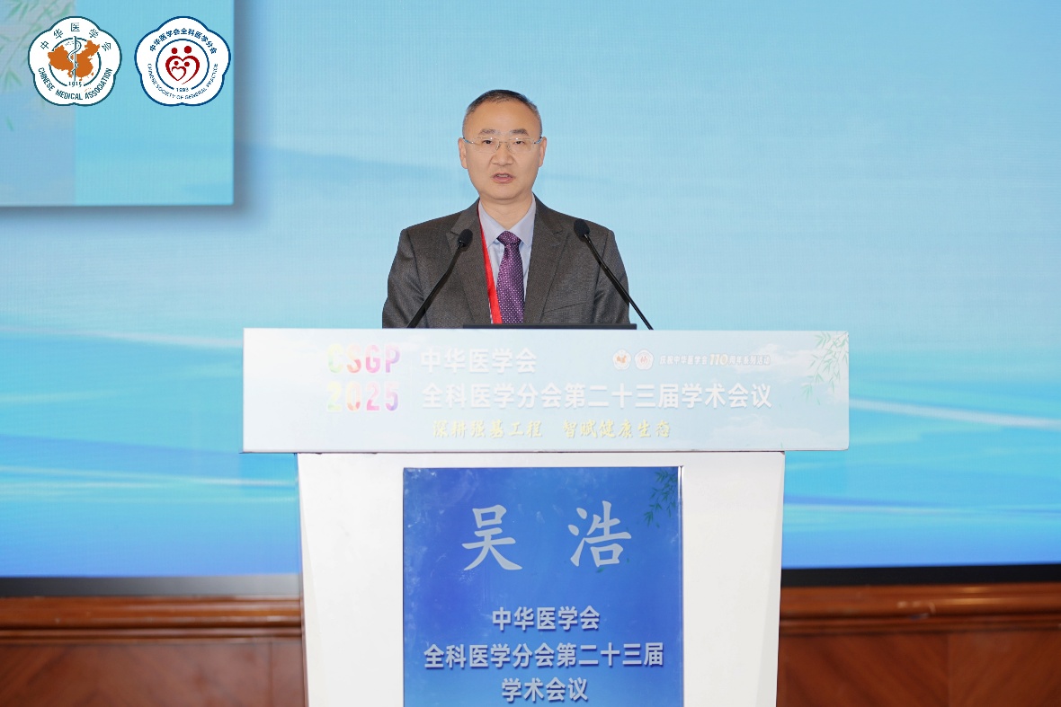 吴浩院长在大会上做了题为《医学人工智能发展基层应用的机遇与挑战》的主旨报告,在报告中详细阐述了数智医疗如何通过智能辅助诊断和远程健康管理等技术,提升基层服务的效率与质量。他强调这股技术浪潮是推动全科医学向以健康为中心、预防为主的整合型服务模式转型的关键力量,其深刻论述为全科医学如何在“健康中国”战略背景下担负起守护人民健康的核心使命指明了前进方向。